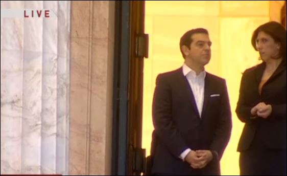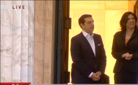Ο Πρωθυπουργός Αλέξης Τσίπρας και η πρόεδρος της Βουλής Ζωή Κωνσταντοπούλου υποδέχθηκαν τον νέο Πρόεδρο της Δημοκρατίας Προκόπη Παυλόπουλο στην είσοδο της Βουλής, πριν ξεκινήσει η ορκωμοσία του.