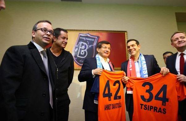 Ο φωτογραφικός φακός απαθανάτισε τον Αλέξη Τσίπρα και τον Αχμέτ Νταβούτογλου να κρατούν δύο πορτοκαλί φανέλες με τα ονόματα τους. Ο Έλληνας πρωθυπουργός είχε το νούμερο 34 και ο Τούρκος ομόλογος του το 42. Και οι δύο ηγέτες ήταν χαμογελαστοί και φορούσαν κασκόλ με τα χρώματα των δύο χωρών. Σύμφωνα με τους Τούρκους δημοσιογράφους επιλέχτηκε το πορτοκαλί στις φανέλες γιατί είναι το επίσημο χρώμα του Δήμου Κωνσταντινούπολης.