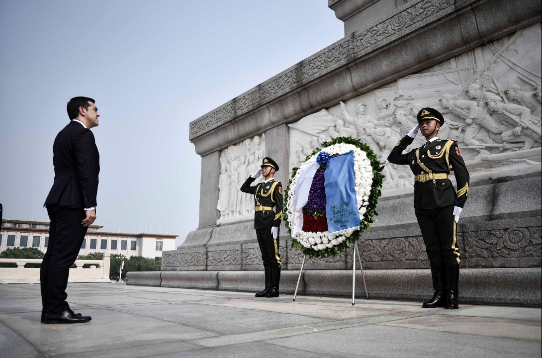 Στο πλαίσιο της επίσημης επίσκεψής του στην Κίνα, ο Έλληνας Πρωθυπουργός Αλέξης Τσίπρας, βρέθηκε νωρίτερα, στο Μνημείο Ηρώων του Λαού στην Πλατεία Τιέν Αν Μεν, όπου και κατέθεσε στεφάνι.