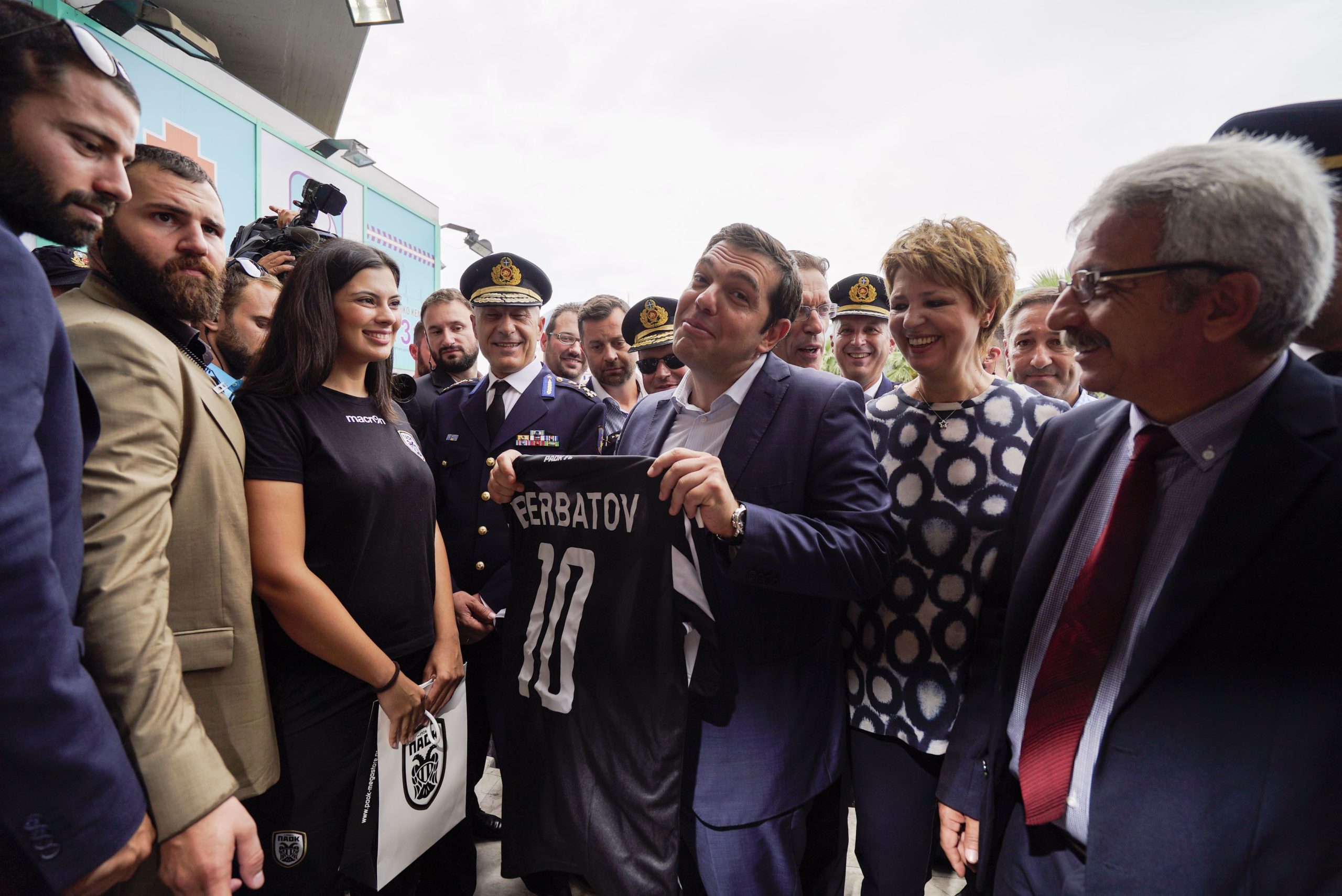 Από το περίπτερο του ΠΑΟΚ στη ΔΕΘ πέρασε ο Αλέξης Τσίπρας. Τα φλας των φωτογράφων άστραψαν όταν ο πρόεδρος του ΣΥΡΙΖΑ πήρε στα χέρια του τη φανέλα που φορά ο Βούλγαρος διεθνής επιθετικός Ντιμίταρ Μπερμπάτοφ, το νέο μεγάλο μεταγραφικό απόκτημα του «δικεφάλου του Βορρά».