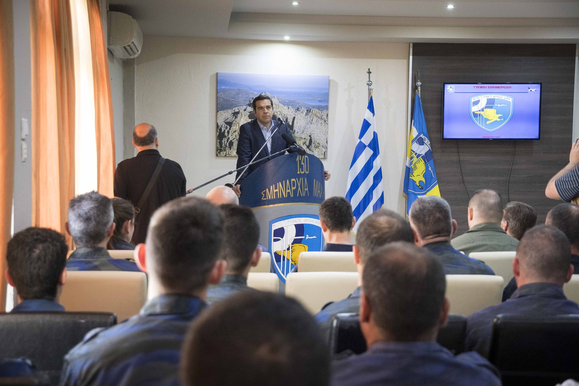 Αυτό υπογράμμισε ο Αλέξης Τσίπρας απευθύνοντας σύντομο χαιρετισμό στους άνδρες και τις γυναίκες της Πολεμικής Αεροπορίας, κατά την επίσκεψή του στην 130η Σμηναρχία Μάχης της Πολεμικής Αεροπορίας στη Λήμνο, όπου ενημερώθηκε από τον διοικητή Ευάγγελο Παναγιώτου, για τον ρόλο της Μονάδας. Στη συνέχεια επισκέφθηκε το οίκημα RDNS, των πληρωμάτων επιφυλακής αεροσκαφών και ελικοπτέρων.