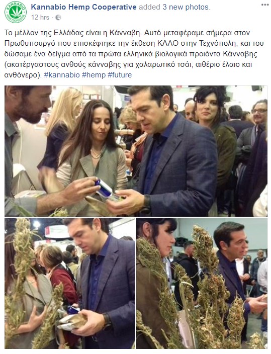 Όπως φαίνεται στις φωτογραφίες που δημοσίευσε στο Facebook, συνεταιρισμός που δραστηριοποιείται στην παραγωγή και μεταποίηση βιολογικής κλωστικής κάνναβης, o κ. Τσίπρας επισκέφτηκε και το περίπτερο που έχει ο συνεταιρισμός στην έκθεση. Οι υπεύθυνοι του συνεταιρισμού μάλιστα, όπως αναφέρουν, έδωσαν στον Πρωθυπουργό και ένα δείγμα από τα πρώτα ελληνικά βιολογικά προϊόντα κάνναβης.