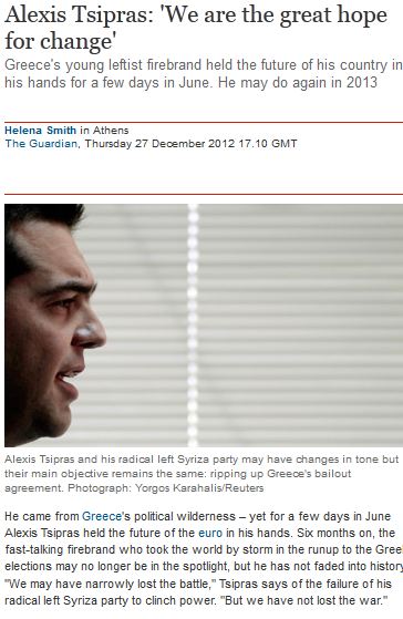 O Τσίπρας στον Guardian: Είμαστε η ελπίδα για αλλαγή