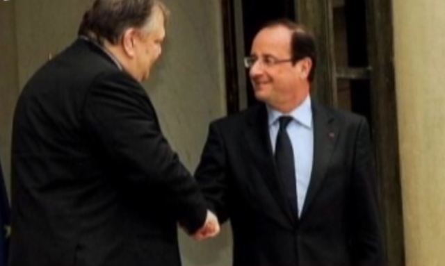 Διέρρευσαν και οι φωτογραφίες της συνάντησης του Ολάντ με τον Ευάγγελο Βενιζέλο στα Ηλύσια Πεδία. Οι πληροφορίες λένε ότι ο Πρόεδρος του ΠΑΣΟΚ ήταν ο πρώτος ξένος που δέχθηκε ο Γάλλος Πρόεδρος στο γραφείο του μετά την εκλογική του νίκη επί του Σαρκοζί.