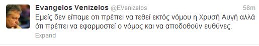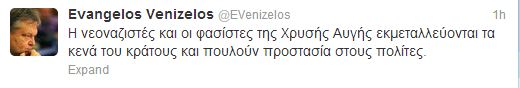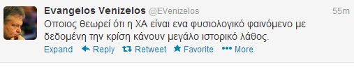 Ο Βενιζέλος twittάρει για τη ΧΑ