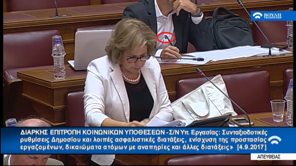 Ο κ. Μαυρωτάς, που καθόταν πίσω από την Εύη Χριστοφιλοπούλου , κρατούσε συνεχώς σημειώσεις, γράφοντας με ένα στυλό που θυμίζει… μαγκούρα και φυσικά δεν πέρασε απαρατήρητο.