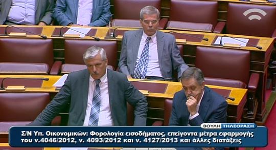 Ένα ενδιαφέρον στιγμιότυπο κατέγραψε η κάμερα κατά τη διάρκεια της σημερινής συζήτησης του πολυνομοσχεδίου. Κάποια στιγμή ο βουλευτής της ΝΔ στον Νομό Τρικάλων Μιχάλης Ταμήλος “μετακόμισε” στα έδρανα όπου κάθονται οι βουλευτές του ΠΑΣΟΚ. Όπως βλέπετε στη φωτογραφία κάθεται δίπλα στον Πάρι Κουκουλόπουλο και πίσω τους διακρίνεται ο Γιώργος Ντόλιος.