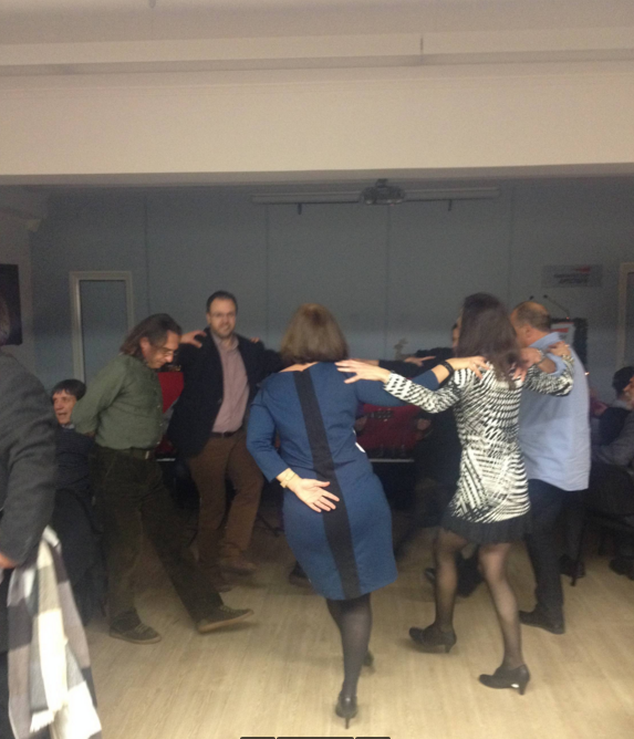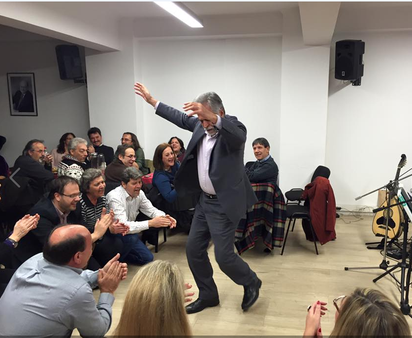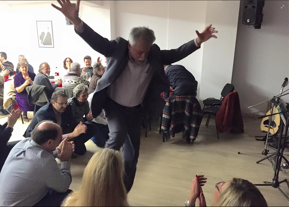 Τις χορευτικές τους ικανότητες έδειξαν ο Θανάσης Θεοχαρόπουλος και ο Δημήτρης Χατζησωκράτης κατά την εορταστική εκδήλωση που πραγματοποιήθηκε στα γραφεία της ΔΗΜΑΡ.