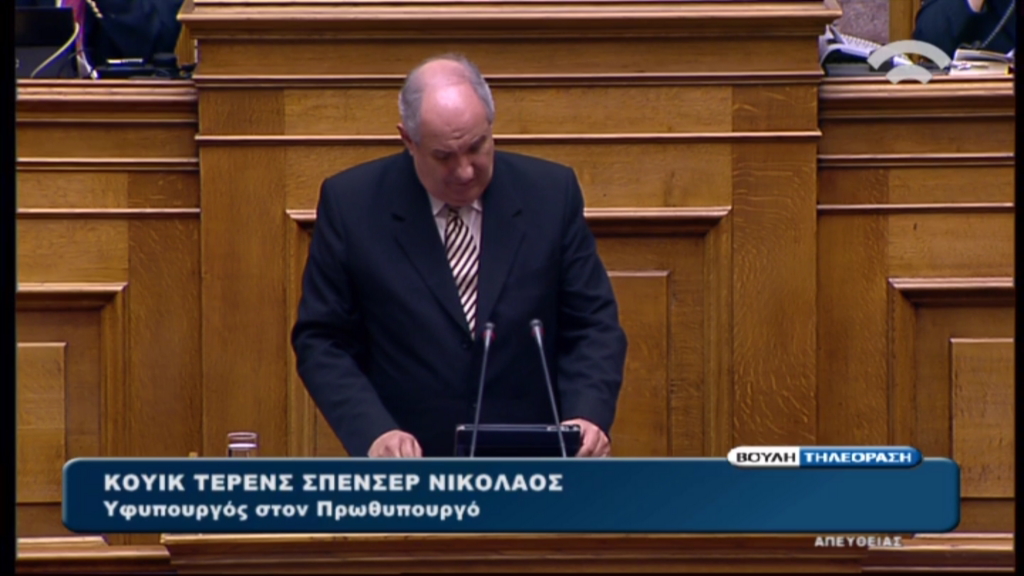 Ο Τέρενς Κουίκ πρωτοτύπησε κατά την ομιλία του στη Βουλή. Ο υφυπουργός Επικρατείας παρά τω Πρωθυπουργώ έβαλε το tablet του στο βήμα της Βουλής και το συμβουλευόταν ανά τακτά χρονικά διαστήματα σε αντίθεση με τους άλλους ομιλητές που κοιτούσαν τα χαρτιά τους.