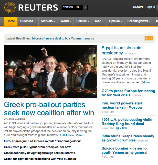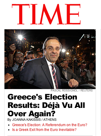 Πρώτη είδηση σε όλα τα αμερικανικά site τα εκλογικά αποτελέσματα των ελληνικών εκλογών. Διαβάστε τους κύριους τίτλους των μεγάλων αμερικανικών ιστοσελίδων…Time: “Τα αποτελέσματα των ελληνικών εκλογών: Deja Vu και πάλι;”
