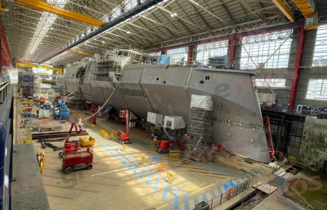 Ταυτόχρονα προχωρούν με ταχείς ρυθμούς οι εργασίες ναυπήγησης της δεύτερης φρεγάτας με το όνομα Νέαρχος. Το enikos.gr είχε βρεθεί τον περασμένο Ιούλιο στην τελετή κοπής του πρώτου ελάσματος της τρίτης φρεγάτας FDI HN Belharra, στο ναυπηγείο της Λοριάν στη Γαλλία.
