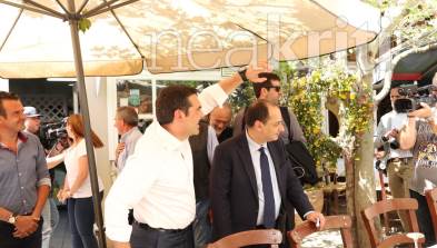 Μετά το φορτωμένο πρόγραμμα του Αλέξη Τσίπρα και τις επισκέψεις στο δρόμο Ηρακλείου –Μεσαράς, στο κομμάτι Γούρνες- Χερσόνησος και στο φράγμα Αποσελέμη, ακολούθησαν στιγμές χαλάρωσης στις Αρχάνες.