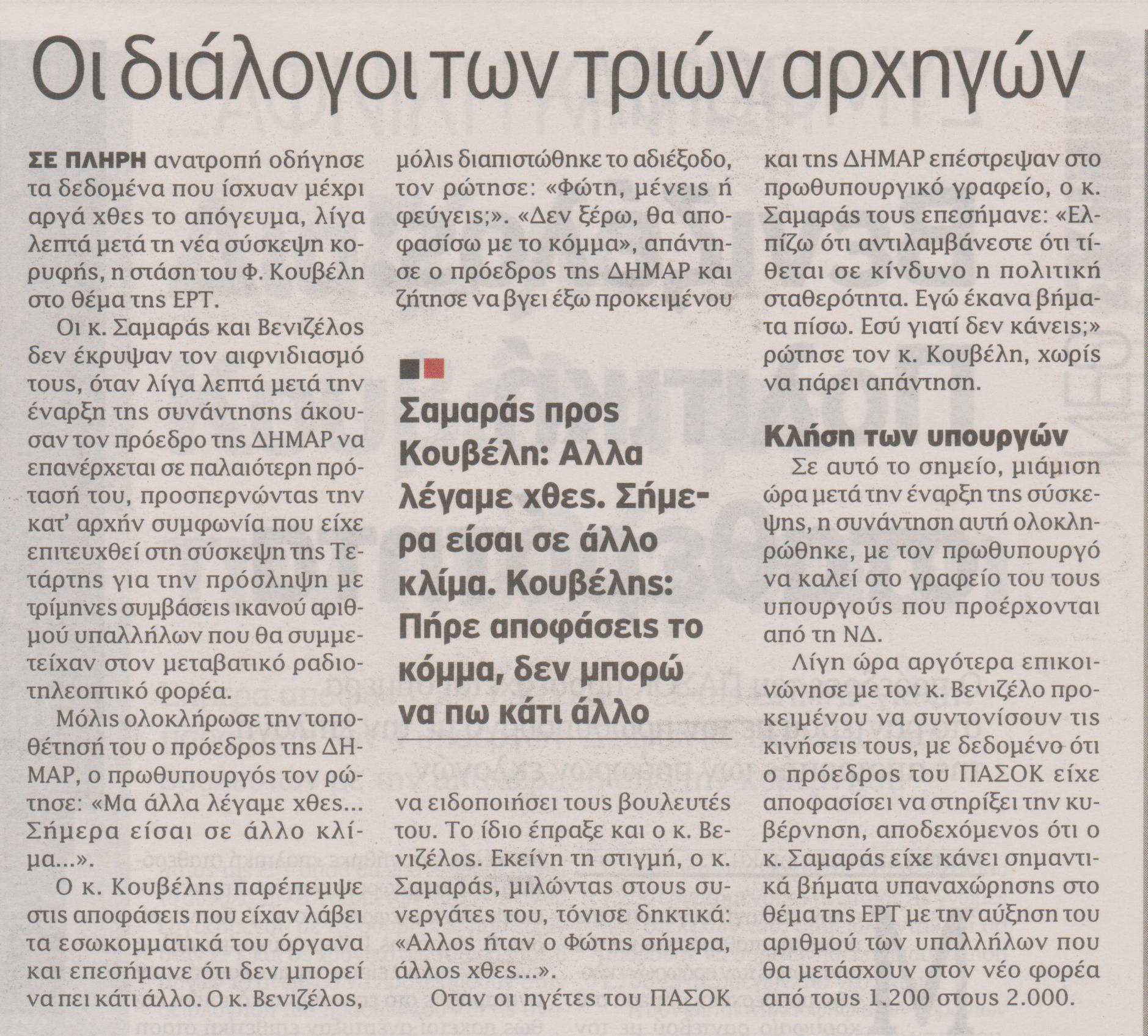 Οι διάλογοι όπως δημοσιεύονται στην εφημερίδα Εθνος.