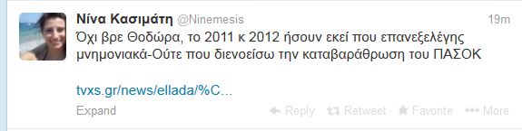 Διευκρινίσεις σχετικά με όσα έγραψε στο Twitter αναφορικά με την Θεοδώρα Τζάκρη δίνει η Νίνα Κασιμάτη, μέλος της Επιτροπής Προγράμματος του ΣΥΡΙΖΑ.