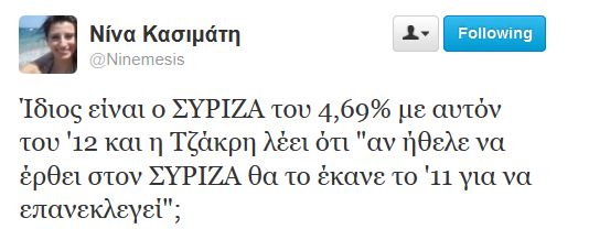“Ίδιος είναι ο ΣΥΡΙΖΑ του 4,69% με αυτόν του ’12 και η Θ.Τζάκρη λέει ότι “αν ήθελε να έρθει στον ΣΥΡΙΖΑ θα το έκανε το ’11 για να επανεκλεγεί”;