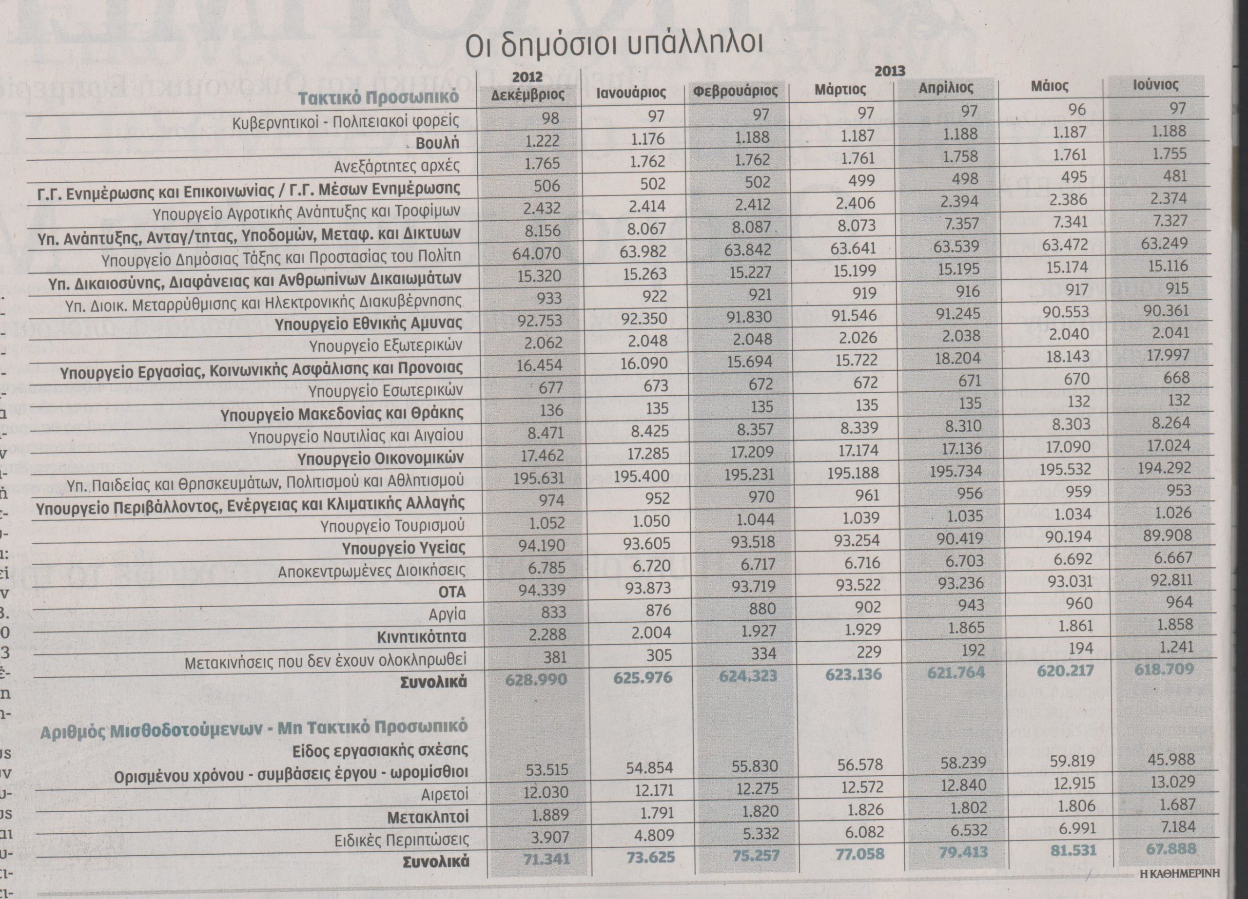 Σε 614.053 ανέρχονται σήμερα οι υπάλληλοι, μόνιμοι και συμβασιούχοι, του δημόσιου τομέα.