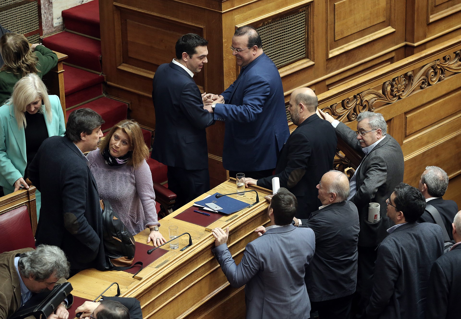 Ευχές για την ονομαστική του εορτή δέχτηκε από υπουργούς και βουλευτές ο Πρωθυπουργός Αλέξης Τσίπρας μετά τη συζήτηση της επίκαιρης ερώτησης του προέδρου της Ένωσης Κεντρώων Βασίλη Λεβέντη για θέματα Υγείας στη Βουλή.Στον Πρωθυπουργό ευχήθηκε νωρίτερα από το βήμα της Βουλής και ο πρόεδρος της Ένωσης Κεντρώων Βασίλης Λεβέντης κλείνοντας τη δευτερολογία του.