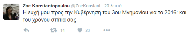 «Η ευχή μου προς την Κυβέρνηση του 3ου Μνημονίου για το 2016: και του χρόνου σπίτια σας».