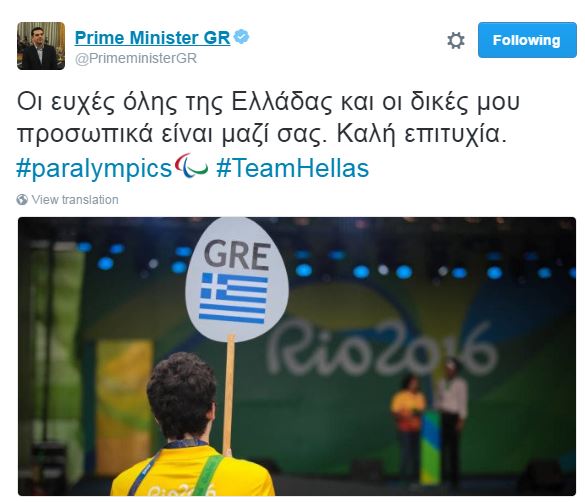 “Οι Παραολυμπιακοί Αγώνες είναι μία από τις στιγμές που αγγίζουν πιο καθαρά από όλες τις άλλες το ιδεώδες του αθλητισμού”, αναφέρει ο Αλέξης Τσίπρας σε αναρτήσεις του στο Twitter με αφορμή την έναρξη απόψε των Παραολυμπιακών Αγώνων στο Ρίο.