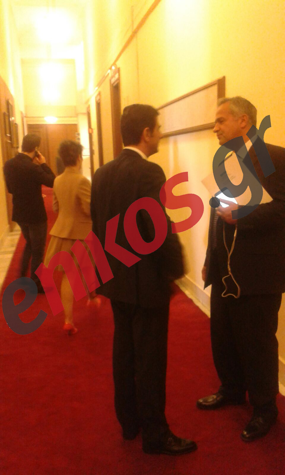 Η βουλευτής του ΣΥΡΙΖΑ είχε σύντομο χαιρετισμό και με δύο βουλευτές της Νέας Δημοκρατίας, συγκεκριμένα με τον Μάκη Βορίδη και τον Κώστα Γκιουλέκα.