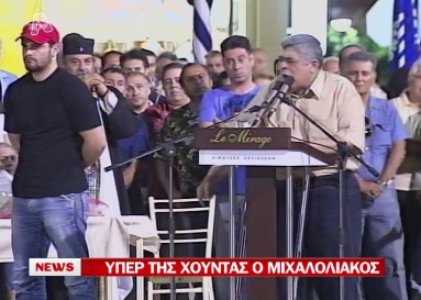 Την ώρα που ο γγ της Χρυσής Αυγής Νίκος Μιχαλολιάκος μιλάει στον Ασπρόπυργο, δίπλα του, στην πρώτη γραμμή, διακρίνουμε δύο μοναχούς, οι οποίοι τον καταχειροκροτούν…