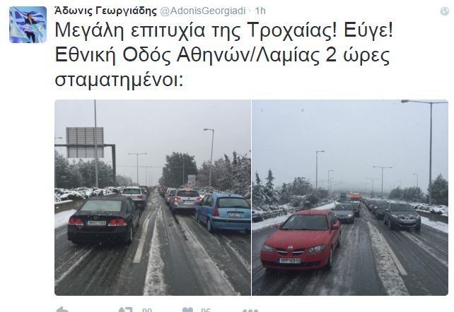 Ο κ. Γεωργιάδης, με μία ανάρτησή του στο twitter, ανέβασε φωτογραφίες από την εικόνα που έχει η Εθνική Οδός και τα έβαλε… με την τροχαία.
