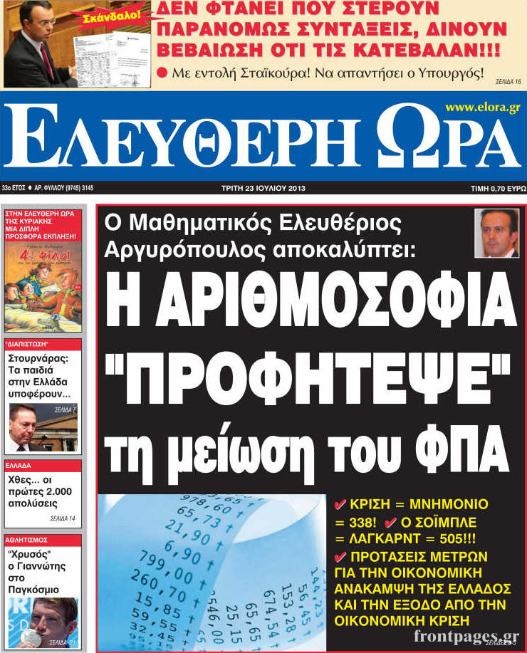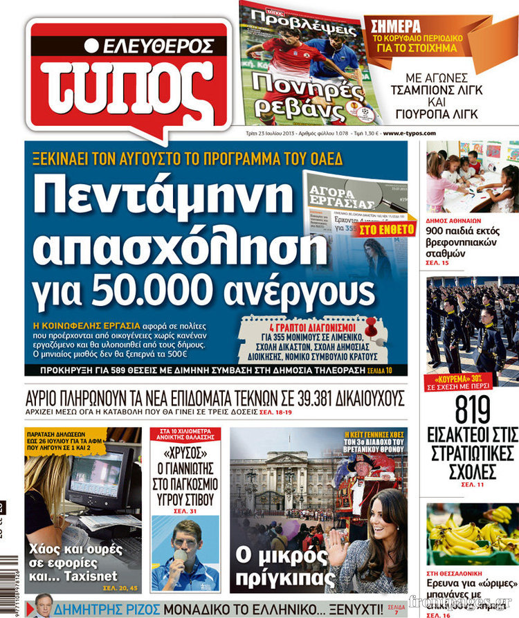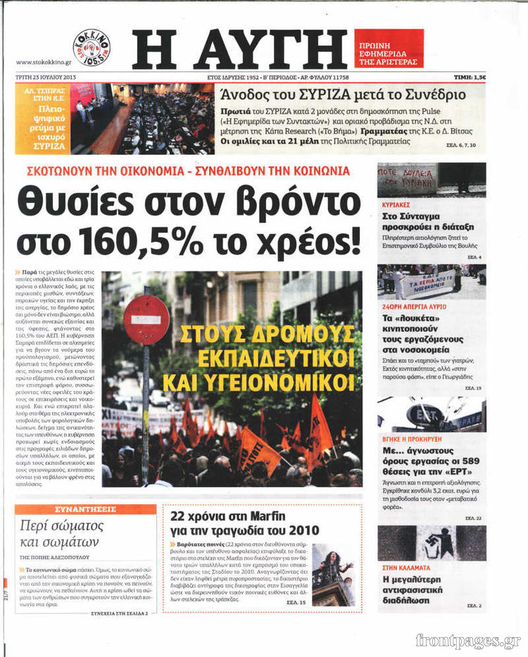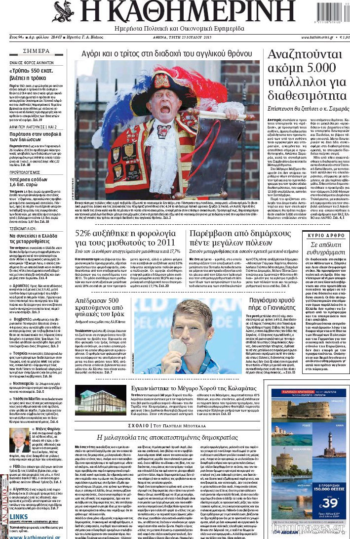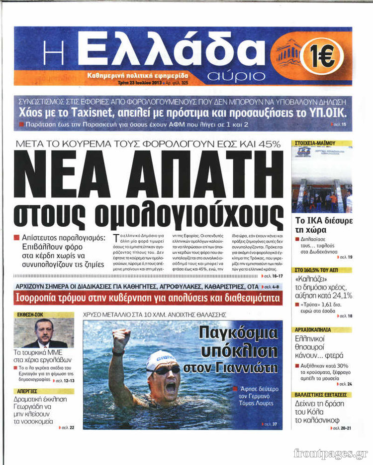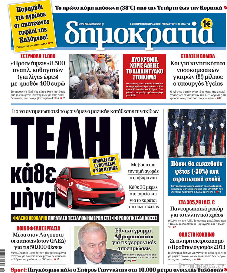 Οι πολιτικές εφημερίδες Enikos Newsroom 08:48, Τρίτη 23 Ιουλίου 2013 πολιτική Οι πολιτικές εφημερίδες Διαβάστε τα πρωτοσέλιδα των πολιτικών εφημερίδων: ΕΦΗΜΕΡΙΔΕΣ ΠΟΛΙΤΙΚΕΣ ΕΦΗΜΕΡΙΔΕΣ ΠΡΩΤΟΣΕΛΙΔΑ Μοιράσου το: σχολίασε κι εσύ (0 σχόλια) Ακολουθήστε το enikos.gr στο Google News και μάθετε πρώτοι όλες τις ειδήσεις Δείτε όλες τις τελευταίες ειδήσεις από την Ελλάδα και τον Κόσμο στο enikos.gr Ειδήσεις Ροή Ειδήσεων 54 λεπτά πριν Με εκτροπές η έξοδος των εκδρομέων για τις γιορτές – Τι ισχύει με τα μπλόκα των αγροτών, άνοιξαν 2 λωρίδες προς Αθήνα στα Μάλγαρα 3 ώρες πριν Μητσοτάκης στο Υπουργικό Συμβούλιο για αγροτικές κινητοποιήσεις: Η κυβέρνηση δεν πρόκειται να υποκύψει σε εκβιασμούς 40 λεπτά πριν Μπλόκα της Τροχαίας: «Λερναία Ύδρα» τα γκρουπ στο Viber που προειδοποιούν για ελέγχους – Το «γκρίζο» νομικό τοπίο και οι νόμιμες εφαρμογές 57 λεπτά πριν ΗΠΑ: Δημοσιεύθηκαν επιπλέον 8.000 έγγραφα του φακέλου Έπσταϊν – Ορισμένοι σύνδεσμοι δεν οδηγούν πουθενά 2 ώρες πριν Ιλίσια: Έπεσε ασανσέρ σε σούπερ μάρκετ – Σοβαρά τραυματισμένος ο συντηρητής 5 ώρες πριν Αυτά τα 4 ζώδια έχουν πολλά να περιμένουν μετά τη σημερινή ημέρα – «Έρχονται υπέροχα νέα» 4 ώρες πριν Αν πίνετε τον καφέ σας σκέτο, πιθανότατα διαθέτετε αυτά τα 7 ισχυρά χαρακτηριστικά 3 ώρες πριν Απώλεια βάρους: Γυναίκα που έχασε 10 κιλά λίπους μοιράζεται 4 «ρεαλιστικές» συμβουλές – «Δώστε προτεραιότητα στον ύπνο» 6 ώρες πριν Η Coca-Cola και ο Ελληνικός Ερυθρός Σταυρός μαζί αυτά τα Χριστούγεννα: Μια μεγάλη αγκαλιά για τους συνανθρώπους μας που έχουν ανάγκη 4 λεπτά πριν Μυστήριο στο Διάστημα: Επιστήμονες εντόπισαν ένα «πρωτοφανές φαινόμενο» γύρω από το «Μάτι του Σάουρον», μόλις 25 έτη φωτός από τη Γη 12 λεπτά πριν Mega χριστουγεννιάτικη φορολοταρία: Μπείτε εδώ να δείτε εάν κερδίσατε 100.000 ευρώ 19 λεπτά πριν ΚΚΕ: Η αθλιότητα της κυβέρνησης έχει ξεπεράσει κάθε όριο – Κλείνει τους δρόμους που αφήνουν ανοιχτούς οι αγρότες 26 λεπτά πριν Ηράκλειο: Έπεσε σοβάς από το κτίριο του Εργατικού Κέντρου – «Κινδυνεύουν ανθρώπινες ζωές» 34 λεπτά πριν Ευρωκοινοβούλιο: Έβγαλε ταυτότητα στον… Άγιο Βασίλη – Εξηγεί με χιουμοριστικό τρόπο τα οφέλη της Σένγκεν ENIKOS NETWORK Μπορεί η σοκολάτα να επιβραδύνει τη γήρανση; Τι ρόλο παίζει η θεοβρωμίνη Θεμιστοκλέους: Δεν υφίσταται λόγος ανησυχίας για την εποχική γρίπη Mega χριστουγεννιάτικη φορολοταρία: Μπείτε εδώ να δείτε εάν κερδίσατε 100.000 ευρώ Μητσοτάκης: Δύο παραδείγματα για τα οφέλη που θα έχουν οι συνταξιούχοι από την πολιτική της κυβέρνησης- Τι είπε για κατώτατ... Ο Google Assistant θα παραμείνει λίγο περισσότερο για ορισμένους χρήστες Android Τεστ προσωπικότητας: Το βάζο που θα επιλέξετε αποκαλύπτει πώς λύνετε προβλήματα στη ζωή σας περισσότερα 14:13 , Τρίτη 23 Δεκεμβρίου 2025 Βελόπουλος: «Ο Μητσοτάκης αποδεικνύεται ένας φοβικός, αδίστακτος, επικίνδυνος και εκδικητικός πρωθυπουργός» Σε σκληρό ύφος σχολίασε ο Κυριάκος Βελόπουλος τα όσα είπε ο Κυριάκος Μητσοτάκης στη σημερινή σ... 12:50 , Τρίτη 23 Δεκεμβρίου 2025 Γιώργος Αυτιάς: Ζήτησε πρόσθετη οικονομική υποστήριξη για την Κρήτη λόγω μεταναστευτικού Με επιστολή του προς τον Επίτροπο Μετανάστευσης κ. Magnus Brunner, ο Ευρωβουλευτής της Νέας Δη... 12:21 , Τρίτη 23 Δεκεμβρίου 2025 Σδούκου: Να μην γίνουν οι κινητοποιήσεις παράγοντας κινδύνου για όσους ταξιδεύουν Η επιλογή κινητοποιήσεων που δημιουργούν σοβαρές δυσκολίες στις μετακινήσεις αποτελεί λανθασμέ... 11:47 , Τρίτη 23 Δεκεμβρίου 2025 Μητσοτάκης στο Υ