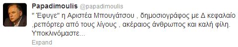 Ο Βασίλης Καπερνάρος, βουλευτής των Ανεξάρτητων Ελλήνων την αποχαιρέτησε έτσι: