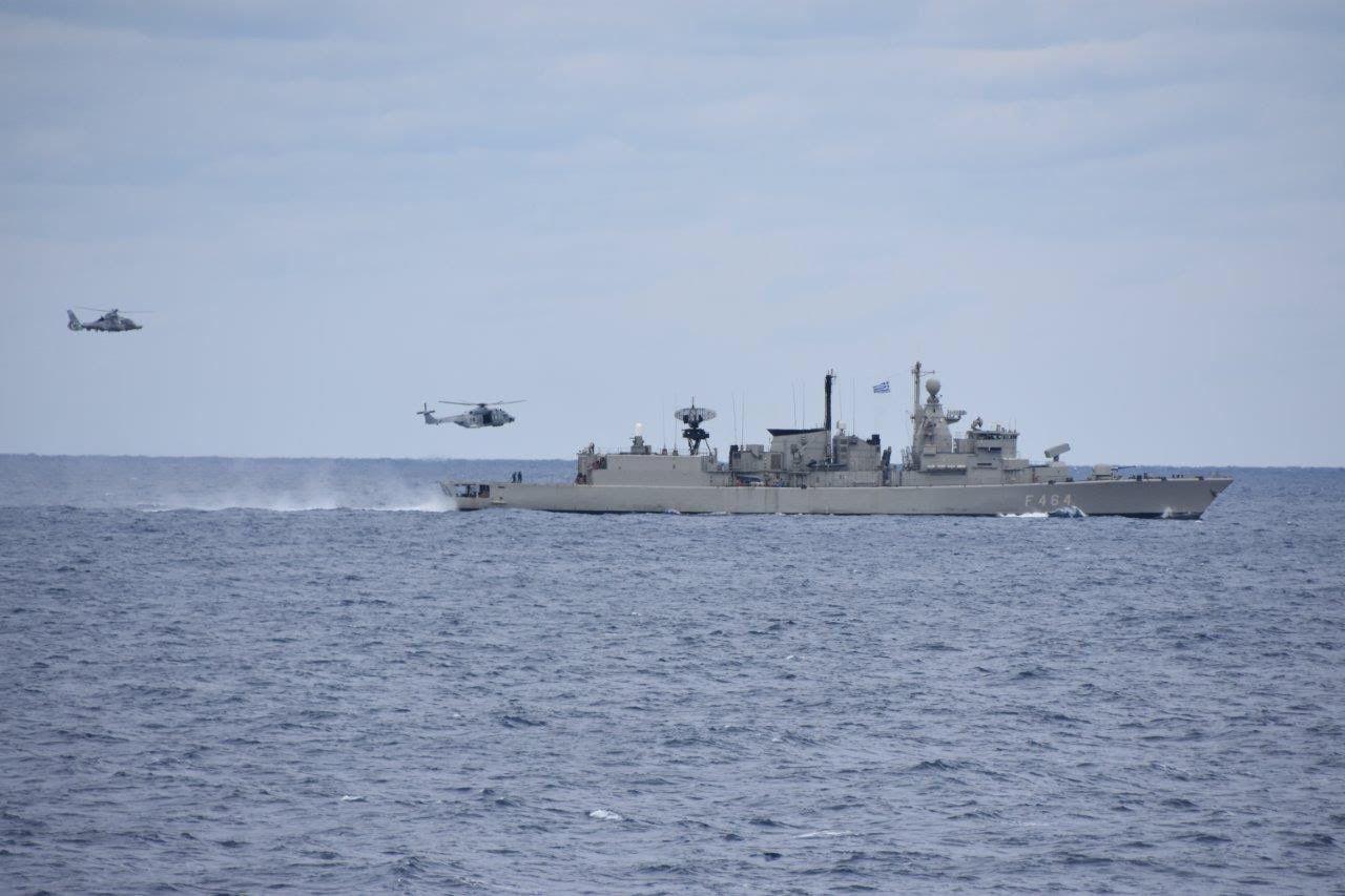 Ταυτόχρονα, το Σάββατο, στο πλαίσιο της επιχείρησης «ANTARES» της Δύναμης Κρούσης του Γαλλικού Αεροπλανοφόρου CHARLES DE GAULLE (CDG) στην Μεσόγειο Θάλασσα, πραγματοποιήθηκε ελεύθερη πτώση αλεξιπτωτιστών των Γαλλικών Ειδικών Δυνάμεων από Αεροσκάφος στο CHARLES DE GAULLE, οι οποίοι στην συνέχεια επιβιβάστηκαν σε Ελικόπτερο και πραγματοποίησαν καταρρίχηση με χρήση FAST ROPE στην Φρεγάτα ΚΑΝΑΡΗΣ.