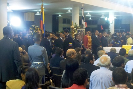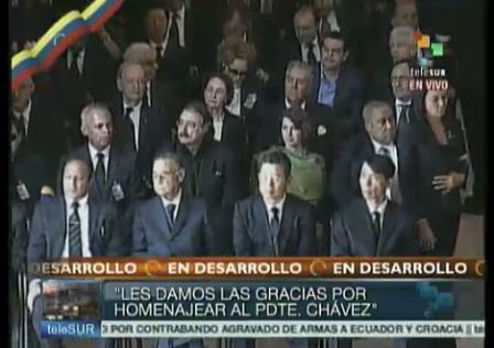 Στη συνέχεια συνομίλησε με τους προέδρους της Κούβας Ραούλ Κάστρο, της Ουρουγουάης Χοσέ-Πέπε Μουχίκα, τον υπουργό Εξωτερικών του Ισημερινού Ρικάρντο Πατίνιο, και τον πρόεδρο του Ισημερινού, Ραφαέλ Κορρέα, ενώ παρέμεινε στην αίθουσα τελετών για περίπου δυόμισι ώρες, μαζί με τους ξένους ηγέτες και την οικογένεια Τσάβες.