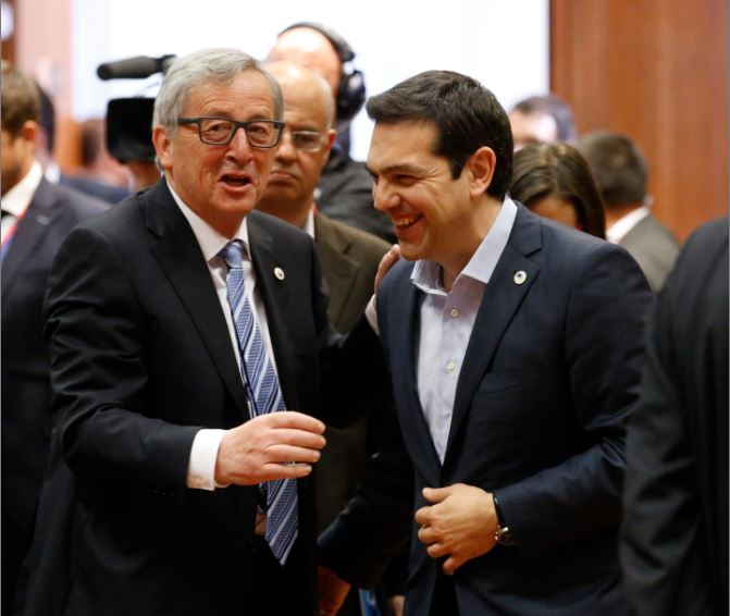 Τετ α τετ με τον Πρόεδρο της Ευρωπαϊκής Επιτροπής, Ζαν Κλοντ Γιούνκερ, είχε ο Έλληνας Πρωθυπουργός, Αλέξης Τσίπρας, στις Βρυξέλλες κατά τη διάρκεια της έκτακτης Συνόδου Κορυφής. Όπως φαίνεται και στις φωτογραφίες, η συνάντηση τους έγινε σε πολύ καλό κλίμα ενώ δεν έλειψαν οι αγκαλιές και τα χαμόγελα.