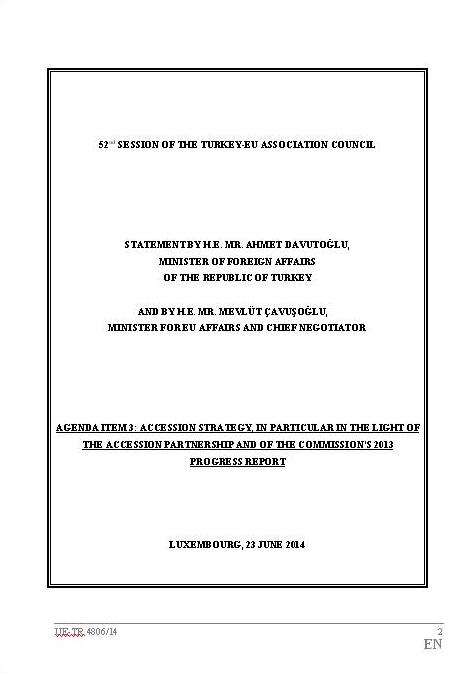 «Μέχρι να βρεθεί μια τελική και ισότιμη λύση στο θέμα της Κύπρου, η Τουρκία δεν μπορεί να δει θετικά την αποδοχή των Ελληνοκυπρίων στους διεθνείς οργανισμούς. Αποδεχόμενη τα αιτήματα των Ελληνοκυπρίων να έχουν πρόσβαση στους Διεθνείς οργανισμούς θα ενίσχυε το εσφαλμένο επιχείρημά τους να εκπροσωπούν την εκλιπούσα Κυπριακή Δημοκρατία και να τους αποσπά από το σκοπό της διευθέτησης. Η Τουρκία θα δράσει σύμφωνα με τις αρμοδιότητές της».