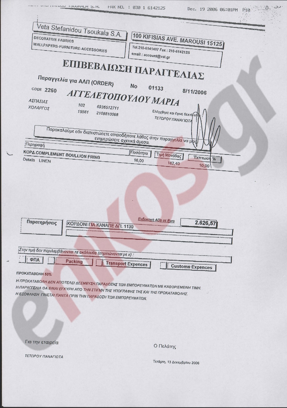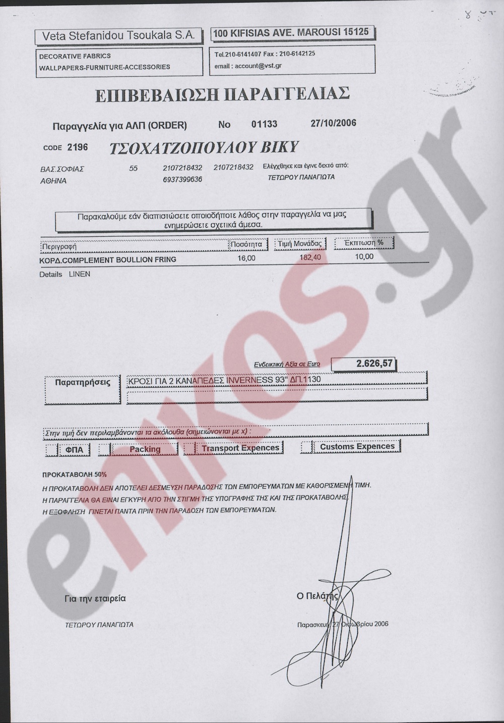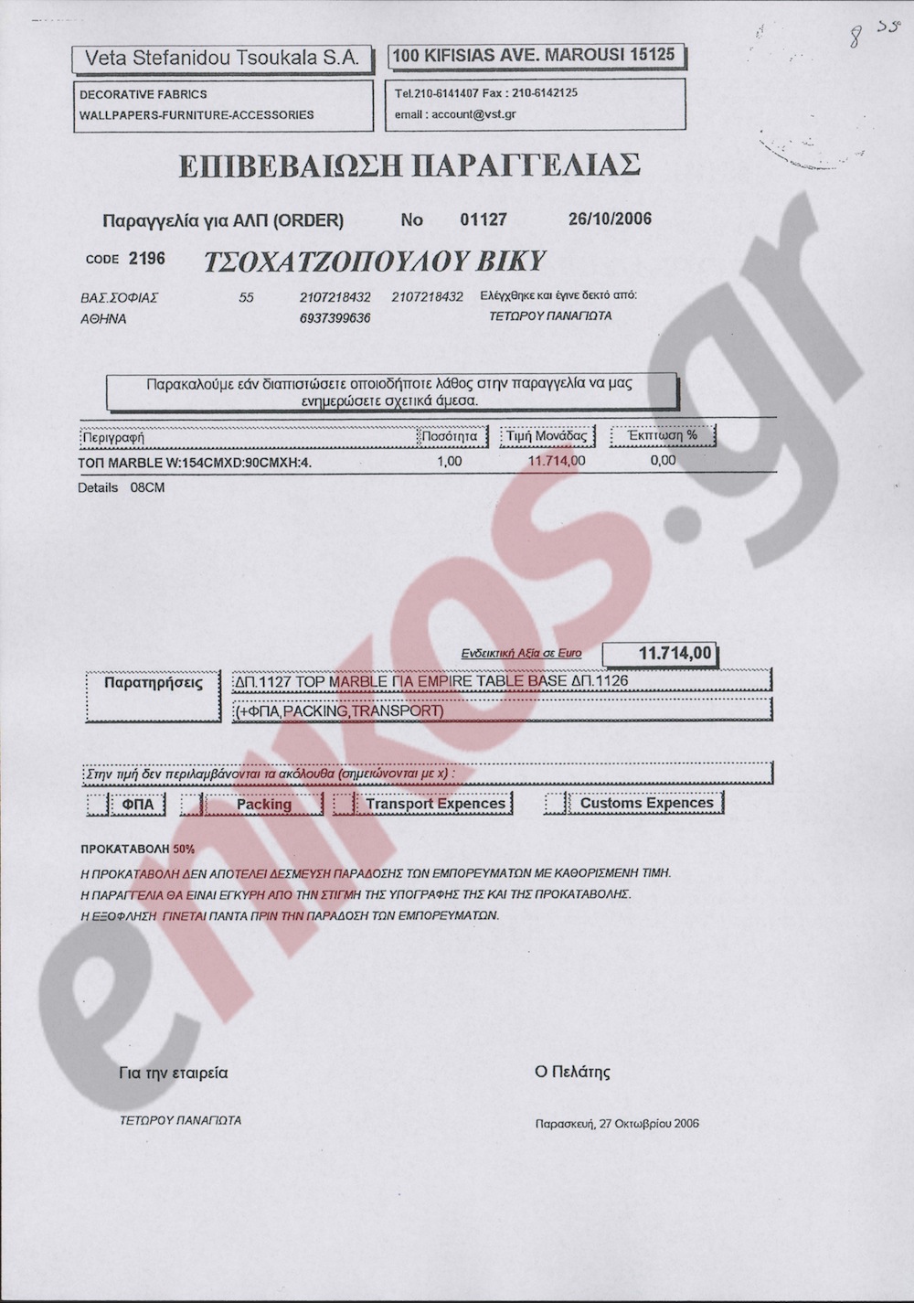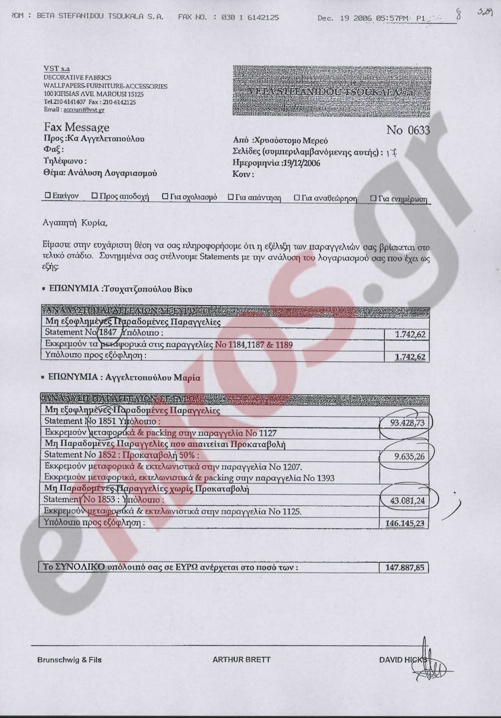 Σε ένα έγγραφο μάλιστα, στο οποίο η εταιρεία επίπλων πληροφορεί τη Βίκυ Σταμάτη και την Μαρία Αγγελετοπούλου για την εξέλιξη των παραγγελιών, φαίνεται ότι το συνολικό ποσό προς εξόφληση είναι 147.887 ευρώ! Κι όλα αυτά μόνο από ένα κατάστημα.