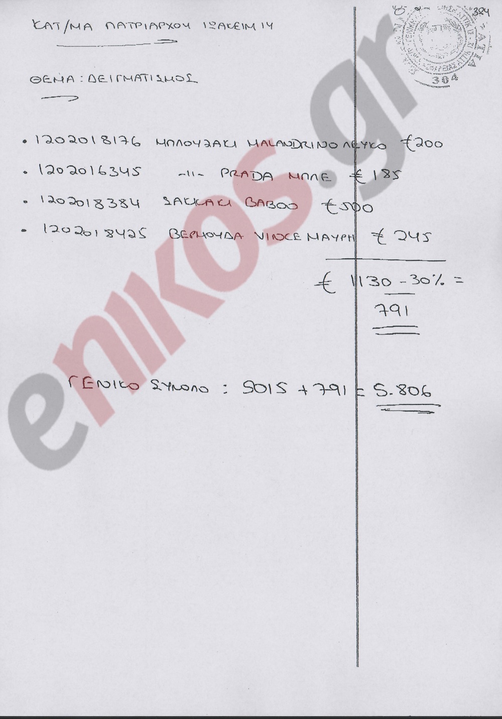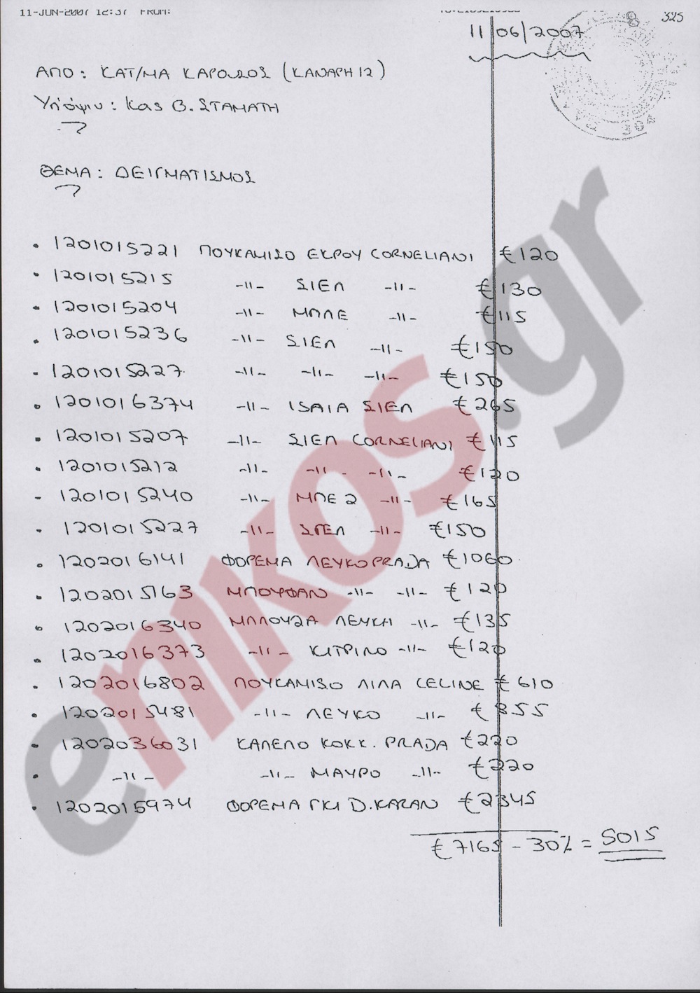 Εντύπωση προκαλεί και το γεγονός ότι το γνωστό κατάστημα ρούχων “Καρούζος” έστελνε ειδική επιστολή στη Βίκυ Σταμάτη με ρούχα τα οποία η σύζυγος του Άκη Τσοχατζόπουλο επιθυμούσε.
