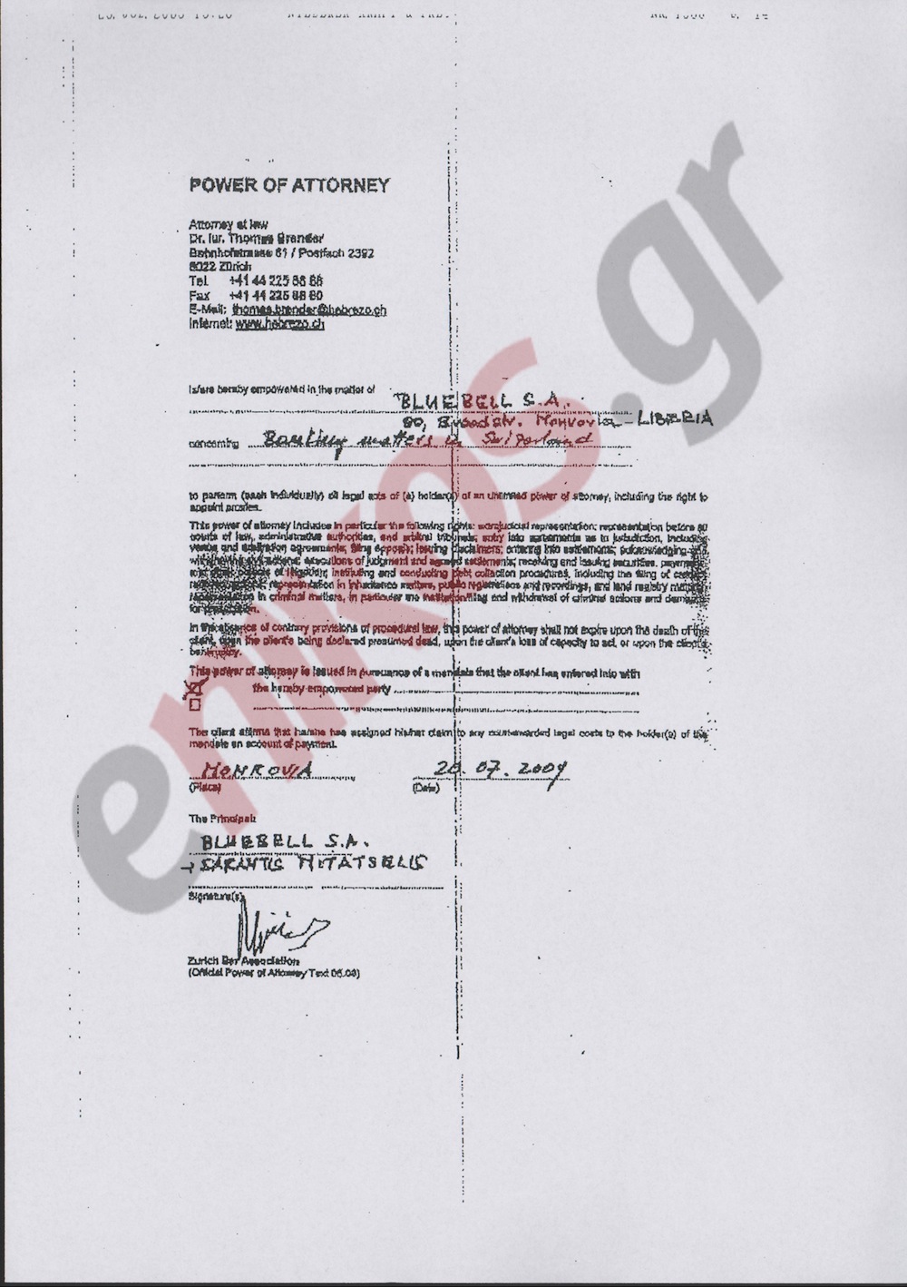 Δείτε το έγγραφο που αναφέρει την BlueBell με έδρα τη Λιβερία, η οποία εμπλέκεται στην προμήθεια των TOR M1.