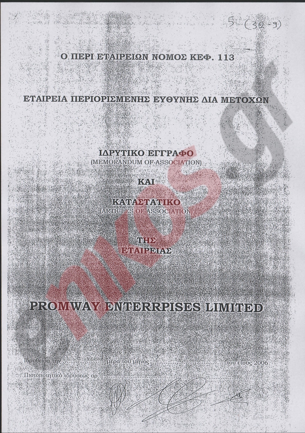 Ενώ, νέες off shore που αναφέρονται ,  αναμένεται να διερευνηθούν από τις αρχές. Χαρακτηριστικά αναφέρουμε την Promway enterprises Limited, το καταστατικό της οποίας βρέθηκε στο προσωπικό του αρχείο.