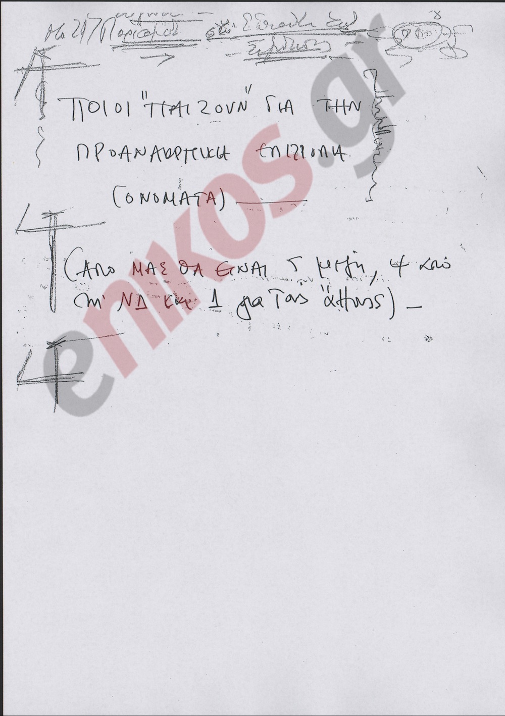 «Ποιοι “παίζουν” για την προανακριτική επιτροπή (ονόματα)» και συνεχίζει «Από μας θα είναι 5 μέλη, 4 από τη ΝΔ και 1 για τους άλλους»