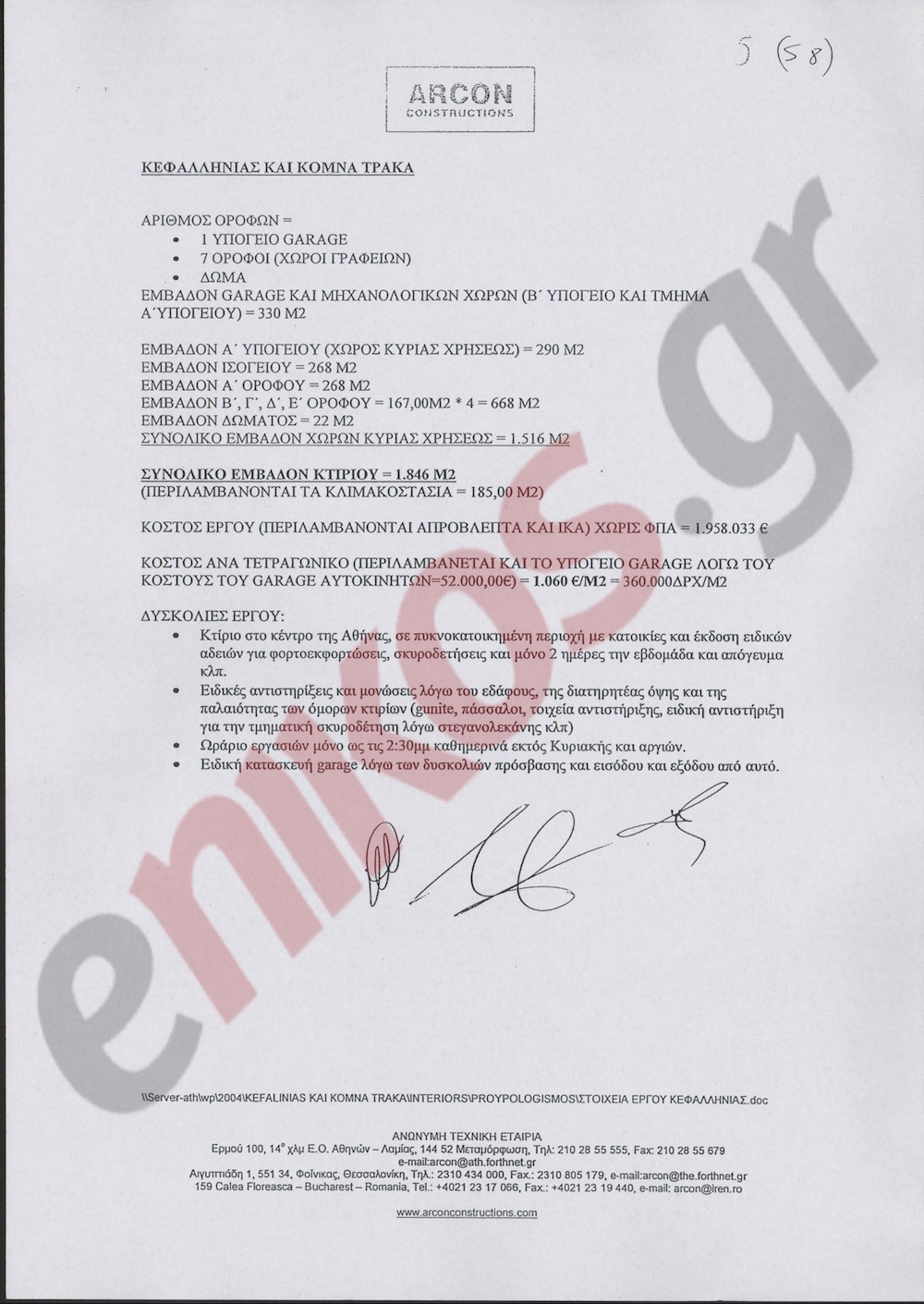 Στο αρχείο του βρέθηκαν ακόμη και παραστατικά για εργασίες στο κτίριο της οδού Κεφαλληνίας και Κόμνα Τράκα, το οποίο αγοράστηκε από την Torcaso, η οποία αφού ανέθεσε την ανακατασκευή του στην Αrcon του Αστέριου Οικονομίδη (ο οποίος είναι επίσης προφυλακισμένος) , το πούλησε στη Μονή Βατοπαιδίου. Χαρακτηριστικό είναι έγγραφο με λογότυπο της Arcon Constructions που αναλύει τον προϋπολογισμό του έργου. Το κόστος, όπως αναφέρει, χωρίς ΦΠΑ ανέρχεται σε 1.958.033 ευρώ.