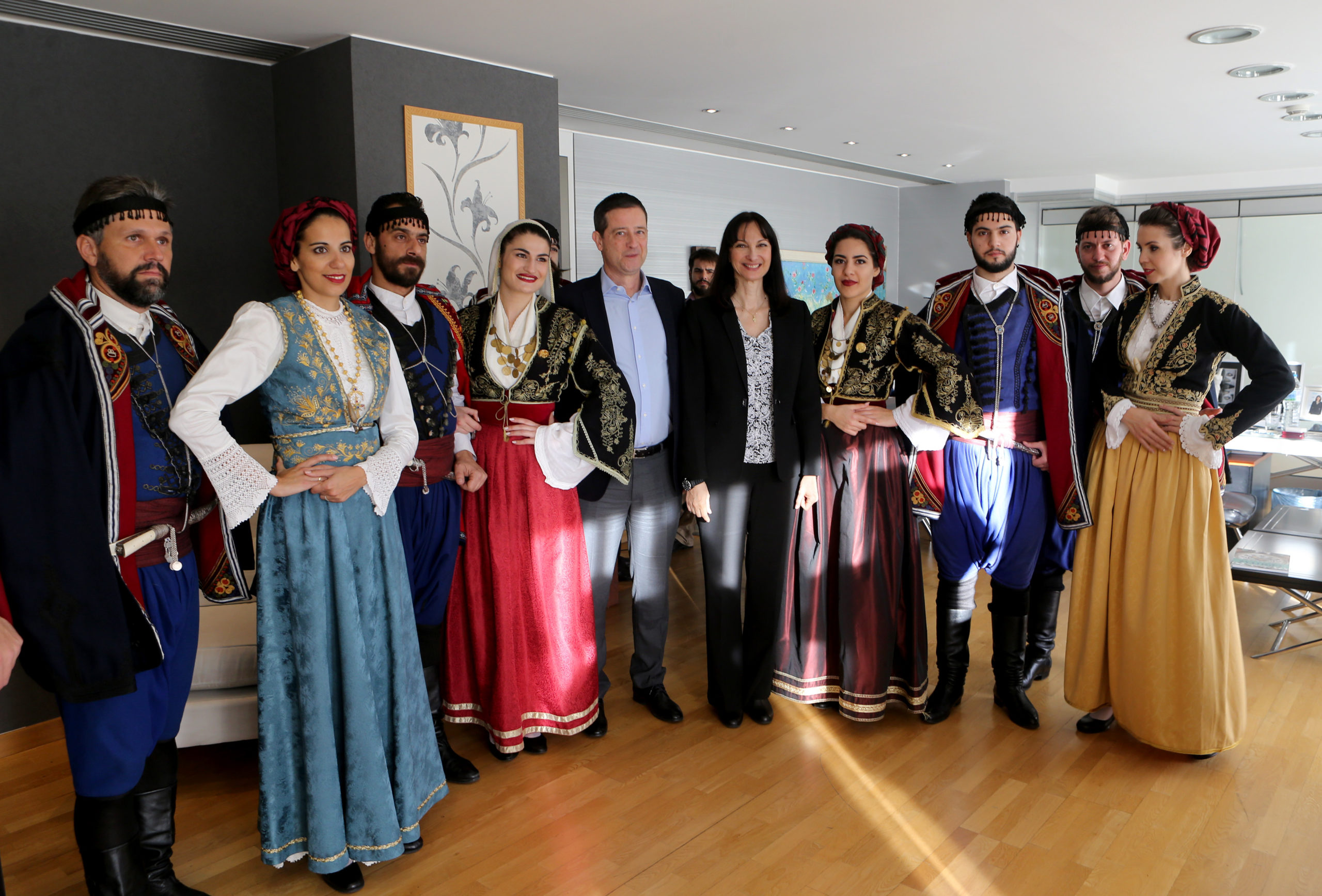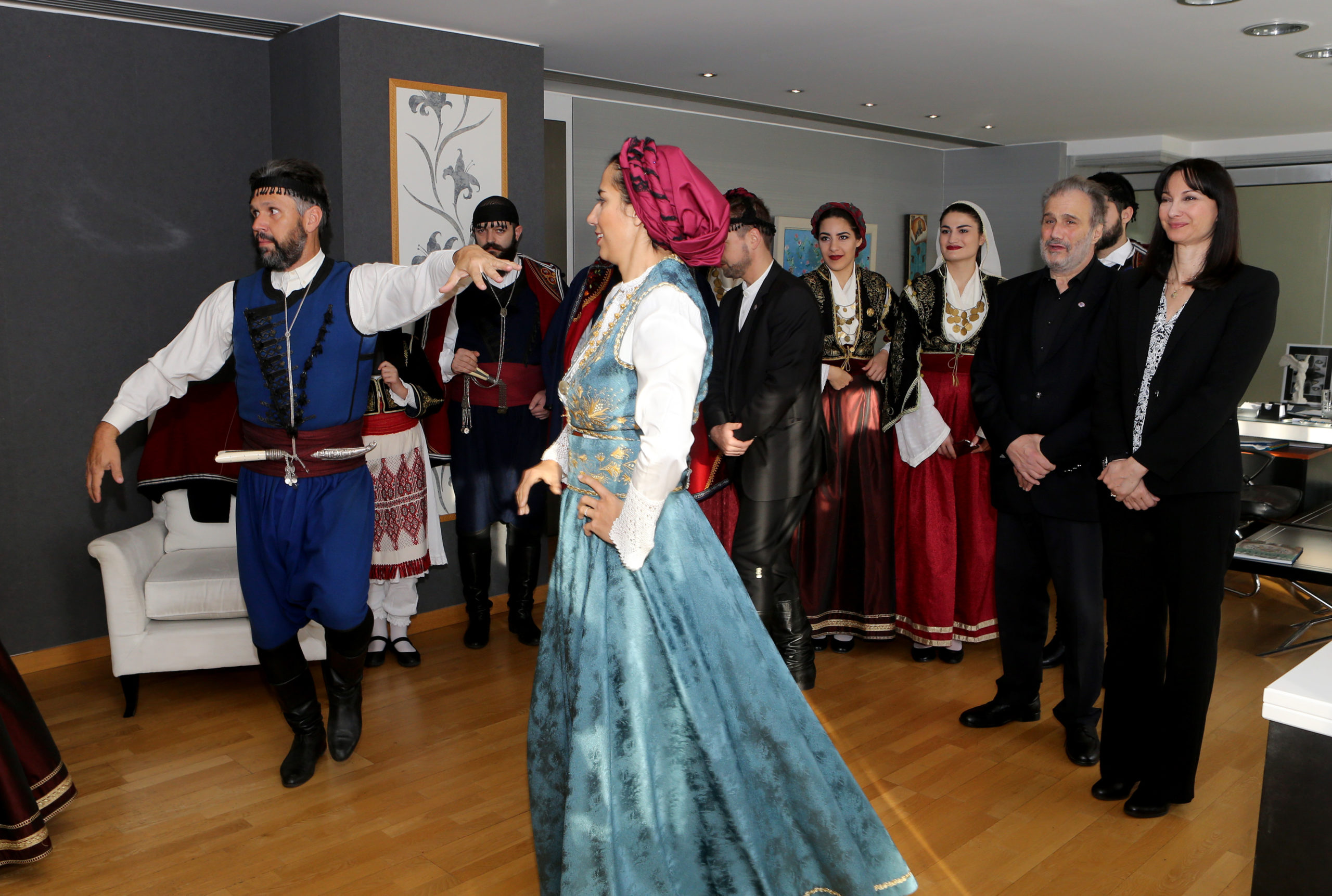 Tην ομάδα Βρακοφόρων Κρήτης, υποδέχτηκε σήμερα το πρωί στο γραφείο της, η Υπουργός Πολιτισμού, Έλενα Κουντουρά, προκειμένου να της ψάλουν τα κρητικά κάλαντα.