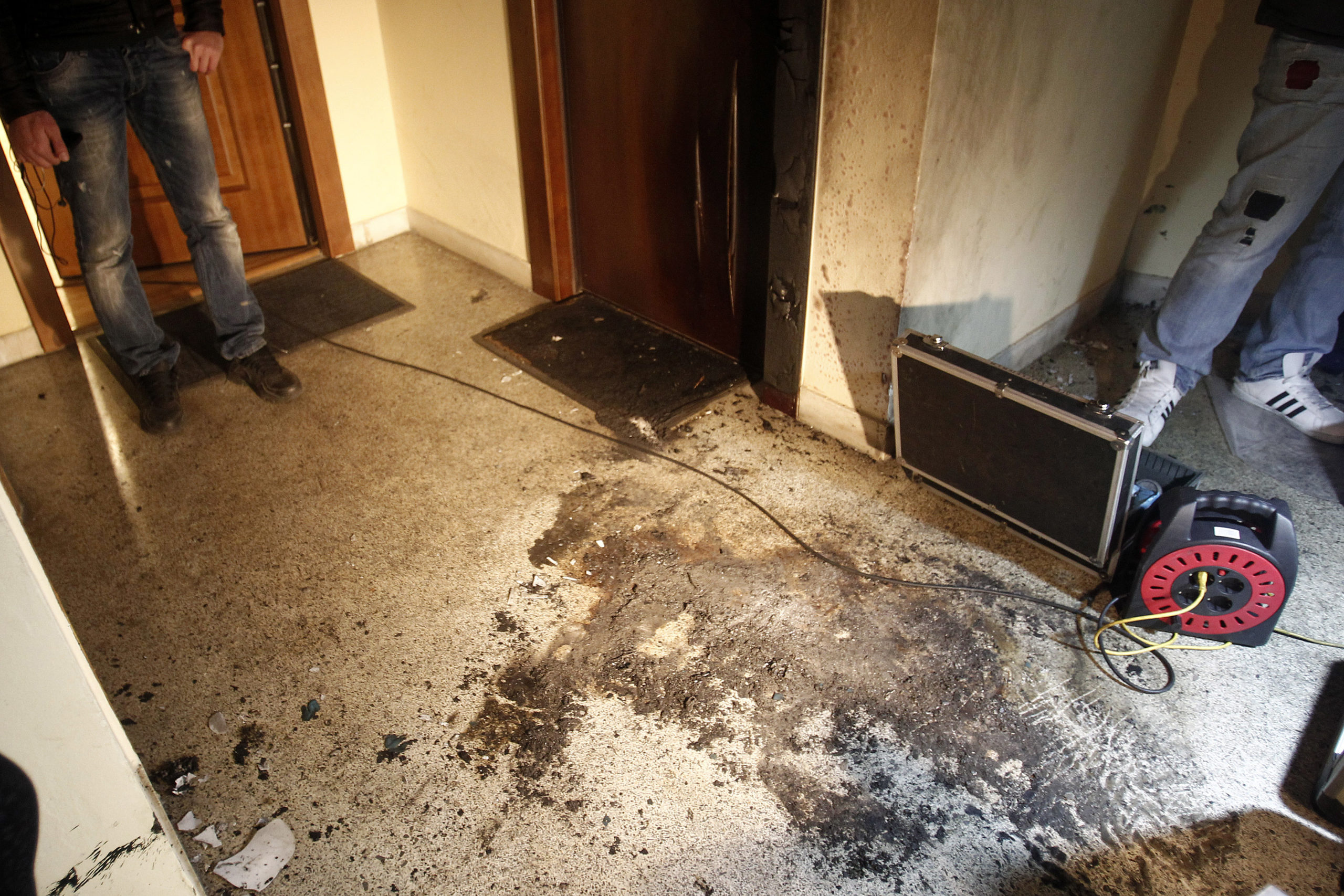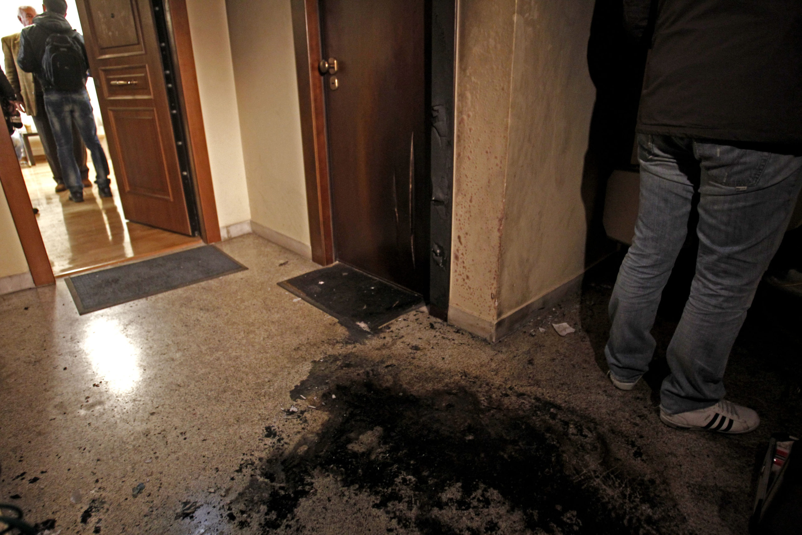 Όπως φαίνεται και στις φωτογραφίες, οι πόρτες υπέστησαν ζημιές και κάηκαν από τα τρία γκαζάκια που τοποθέτησαν άγνωστοι, στο πολιτικό γραφείο του βουλευτή, στο κέντρο της Αθήνας.