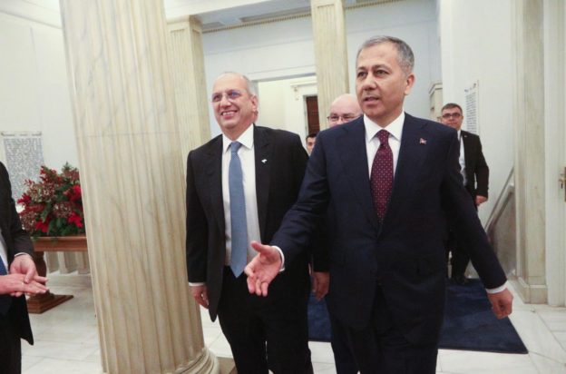 Συνάντηση στο υπουργείο Εξωτερικών πραγματοποίησαν την Πέμπτη (7/12) ο υπουργός Προστασίας του Πολίτη Γιάννης Οικονόμου, o υπουργός Μετανάστευσης και Ασύλου Δημήτρης Καιρίδης και ο υπουργός Ναυτιλίας και Νησιωτικής Πολιτικής Χρήστος Στυλιανίδης συναντήθηκαν με τον υπουργό Εσωτερικών της Τουρκίας, Ali Yerlikaya.