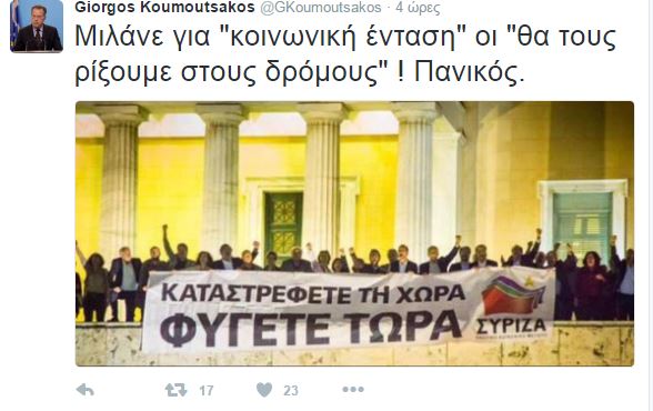 Ενώ μέσω ανάρτησης μιας φωτογραφίας στο Twitter του, ο Γιώργος Κουμουτσάκος ρώτησε την Όλγα Γεροβασίλη αν της θυμίζει κάτι.