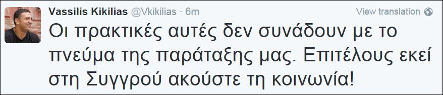 Ο βουλευτής της ΝΔ Βασίλης Κικίλιας, έγραψε στο twitter: