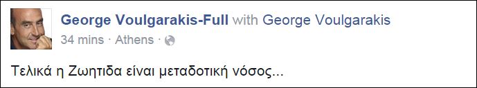 «Τελικά η Ζωήτιδα είναι μεταδοτική νόσος» έγραψε στον προσωπικό του λογαριασμό στο Facebook.