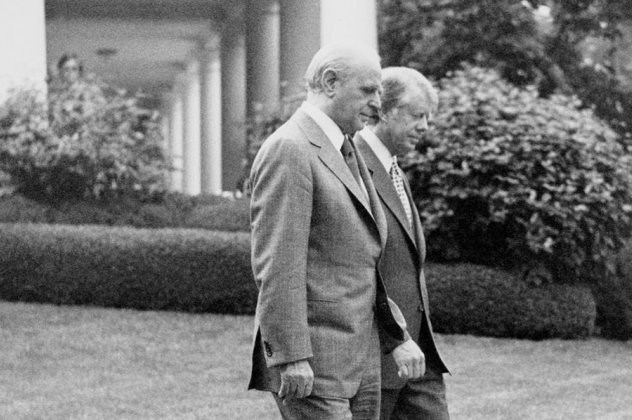 Μεσολαβεί η επτάχρονη δικτατορία στην Ελλάδα, η εισβολή των Τούρκων στην Κύπρο και τον Απρίλιο του 1978 ο Κωνσταντίνος Καραμανλής επισκέπτεται ανεπισήμως το Λευκό Οίκο. Είχε βρεθεί στις ΗΠΑ για τη Σύνοδο Κορυφής του ΝΑΤΟ. Οικοδεσπότης του Λευκού Οίκου είναι ο Τζίμι Κάρτερ, ο οποίος γίνεται αποδέκτης της ελληνικής διαμαρτυρίας για την άρση του εμπάργκο κατά της Τουρκίας που σηματοδοτεί μια ακόμα κούρσα εξοπλισμών στην περιοχή. Το φωτογραφικό στιγμιότυπο είναι περίπατος των δύο ανδρών στον κήπο του Λευκού Οίκου.
