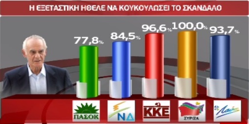 Για προσπάθεια “κουκούλωματος” του σκανδάλου από την εξεταστική επιτροπή του 2005, που δεν είχε καταλογίσει ευθύνες στον Άκη Τσοχατζόπουλο, κάνει λόγο το 84,4% των ερωτώμενων σύμφωνα με τη δημοσκόπηση της GPO για το MEGA. Είναι χαρακτηριστικό ότι μόλις το 11,4% απαντά ότι δεν καταλογίστηκαν ευθύνες επειδή δεν είχαν προκύψει στοιχεία.