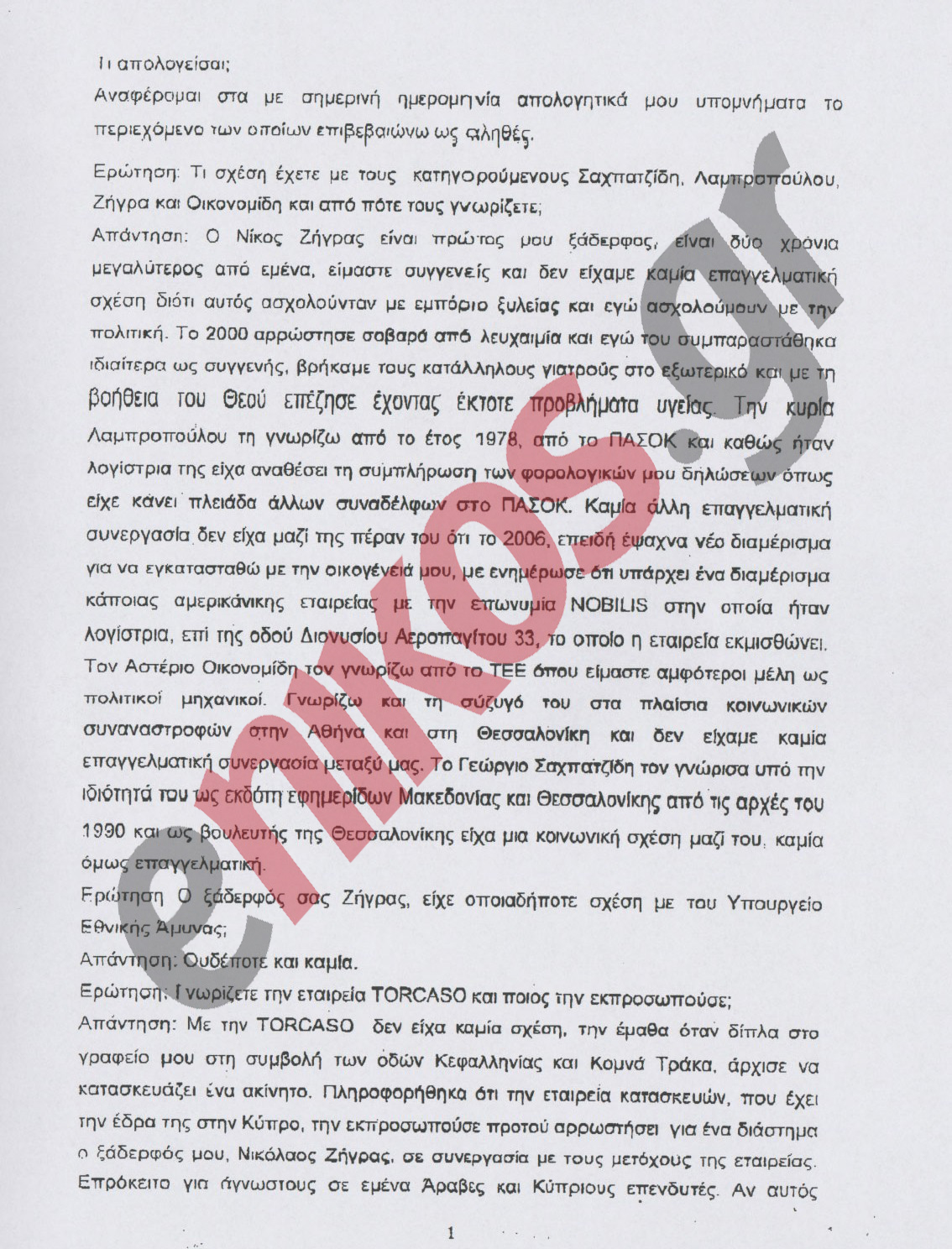 Διαβάστε ολόκληρη την απολογία του πρώην υπουργού Άκη Τσοχατζόπουλου ενώπιον του ανακριτή, πριν οδηγηθεί στις φυλακές Κορυδαλλού.