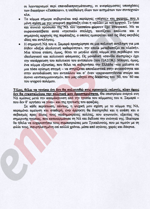 Η επιστολή του Σωτήρη Χατζηγάκη με την οποία τονίζει ότι δεν θα πολιτευθεί και εξαπολύει σφοδρή επίθεση στον Αντώνη Σαμαρά.
