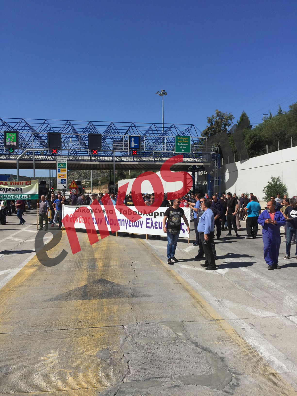 Πριν από λίγο, οι εργαζόμενοι των ναυπηγείων Ελευσίνας έκλεισαν ξαφνικά τα διόδια της Ελευσίνας διαμαρτυρόμενοι για την μη καταβολή των δεδουλευμένων τους από την ιδιοκτήτρια εταιρεία.