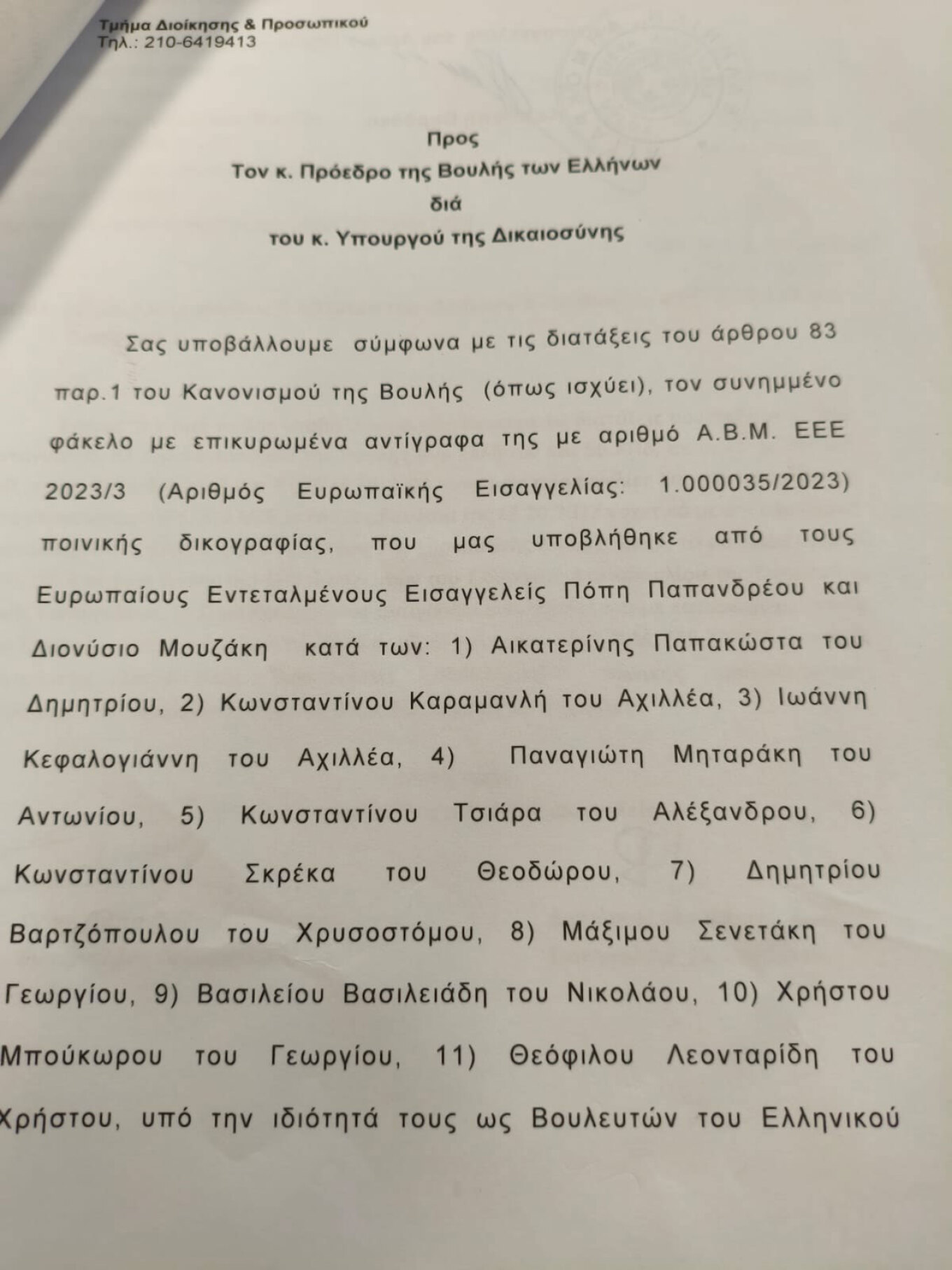Δείτε τα διαβιβαστικά της Ευρωπαϊκής Εισαγγελίας
